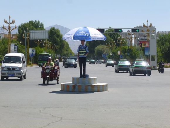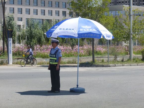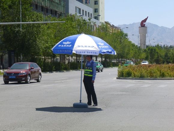 作為人民我們應(yīng)該感謝他,格爾木市經(jīng)銷商為他們送去了遮陽傘,警民共建和諧畫面!