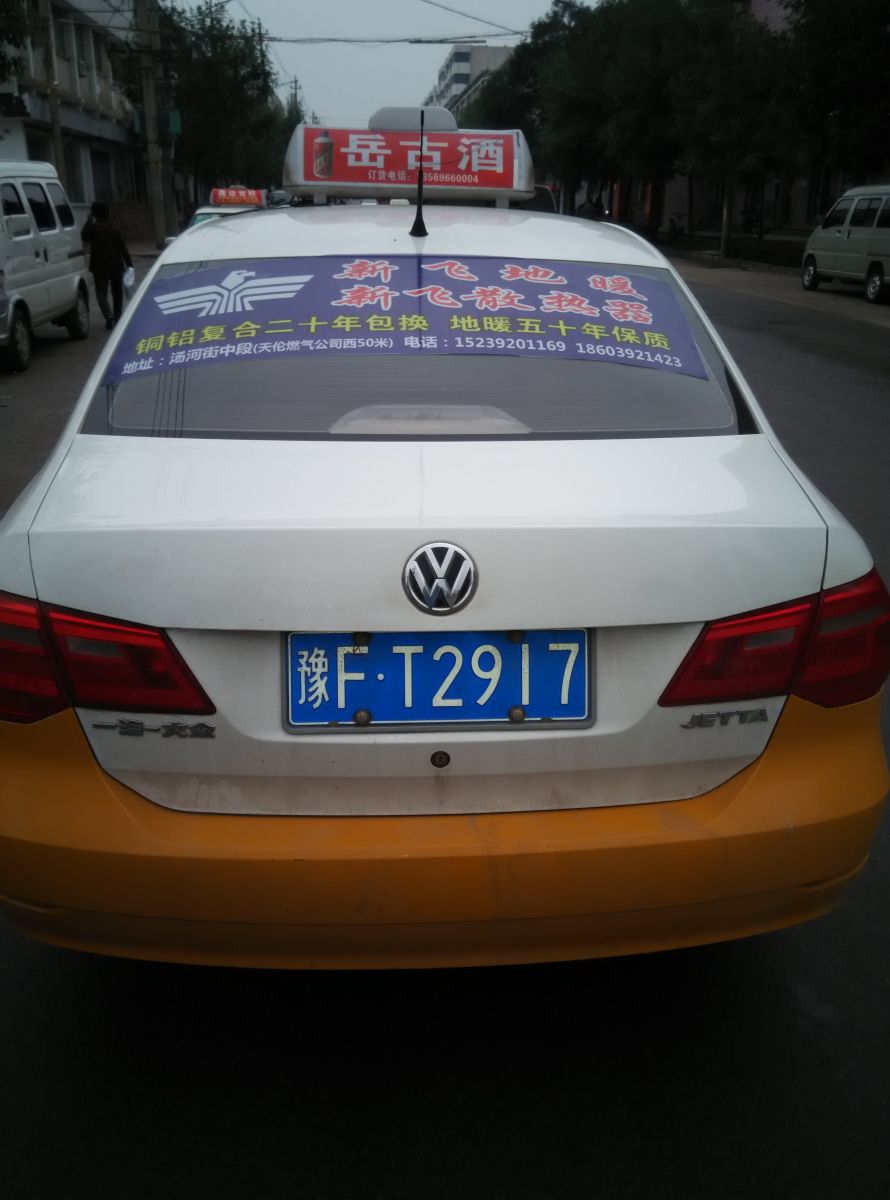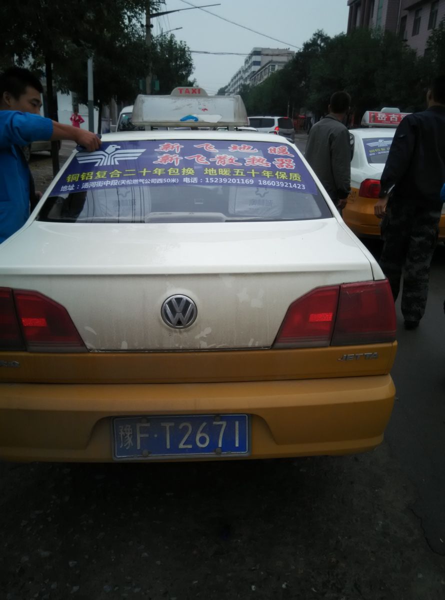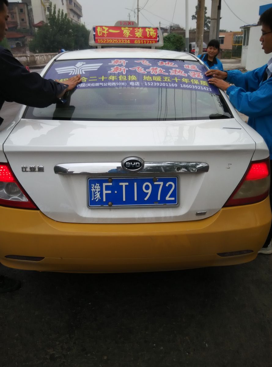 為響應(yīng)新鄉(xiāng)市新飛散熱器有限公司十一優(yōu)惠政策,鶴壁代理商王經(jīng)理在全市舉行團(tuán)購(gòu)簽購(gòu)會(huì),買新飛散熱器抽新飛冰箱大獎(jiǎng),氣氛熱烈,轟動(dòng)全城!為配合公司宣傳,特做百輛出租車廣告。